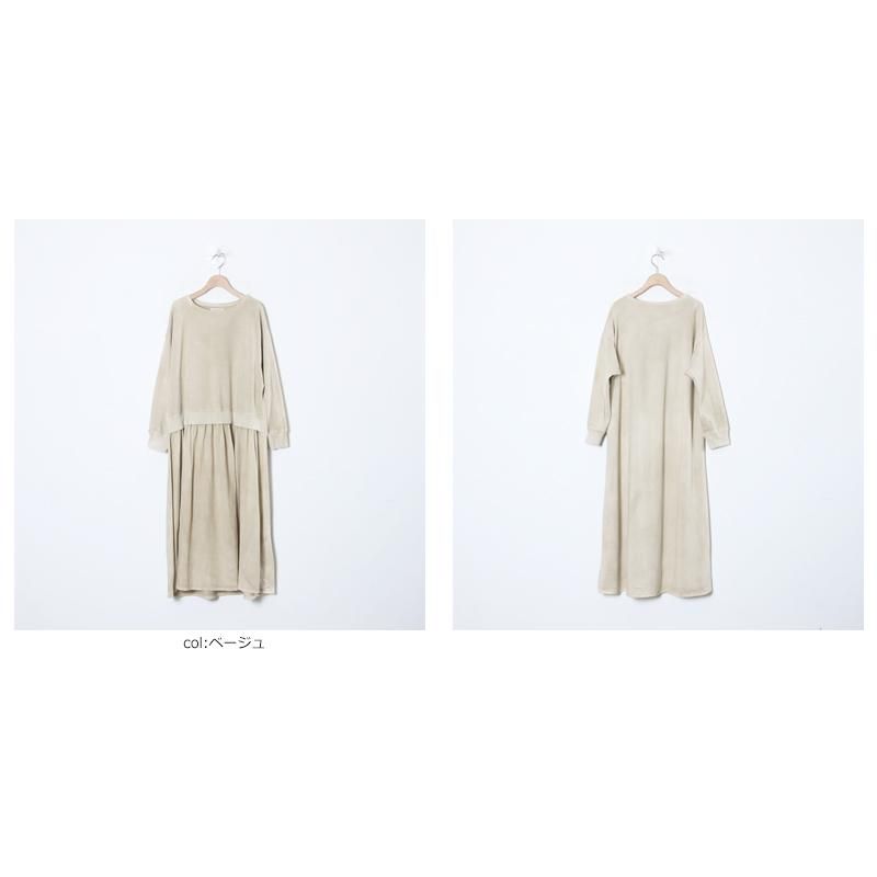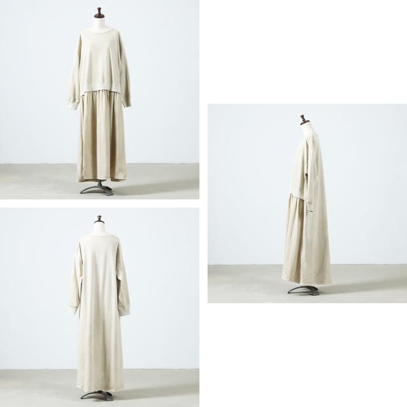 身頃と後ろスカートにはペルー綿のカットソー生地を、前スカートには綿のシャツ生地を使用。染色時の色の濃淡が奥行きを生み出します。