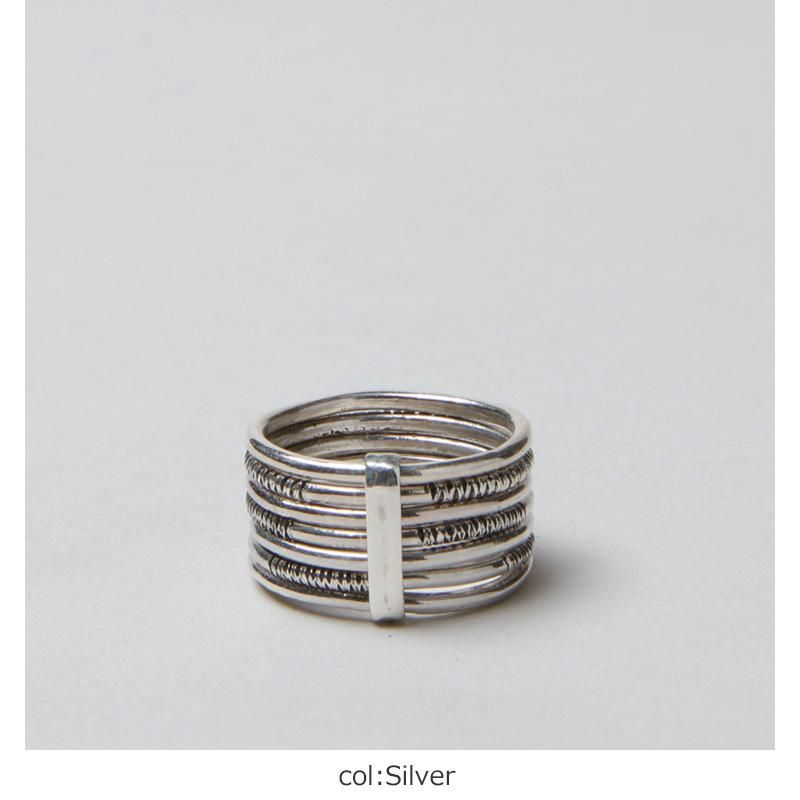 細かな伝統的な柄が手仕事によって施された繊細なリングを7連に重ねたデザインのring 10。