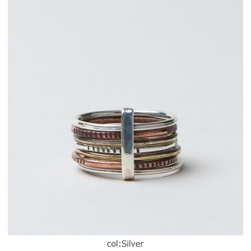 細かな伝統的な柄が手仕事によって施された繊細なリングを7連に重ねたデザインのring 10。