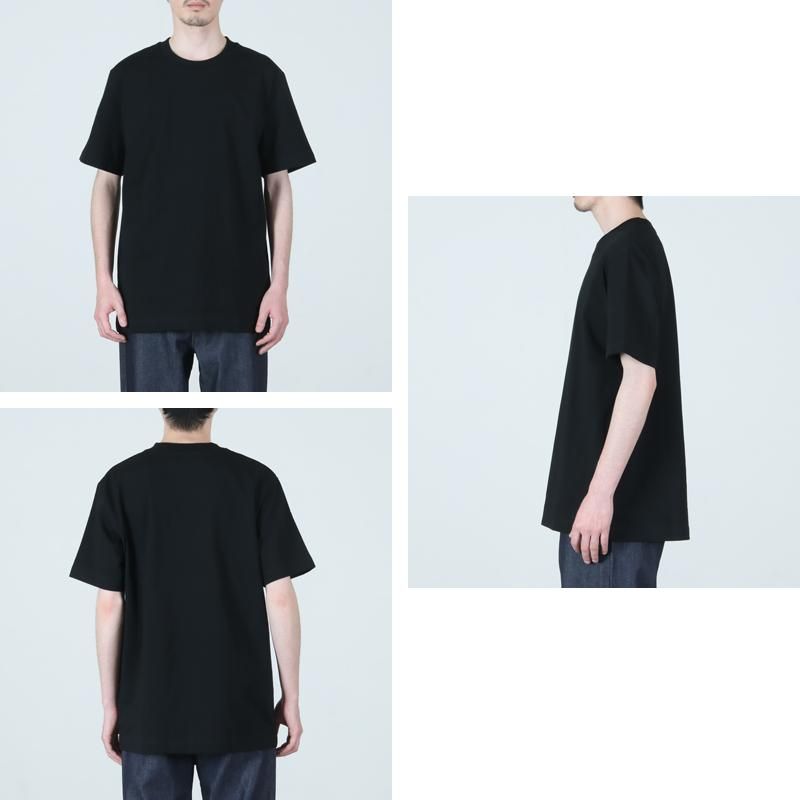 シンプルなブラックとホワイトのハーフスリーブTシャツで、前左裾にさりげなくA.P.C.のブランドネームの刺繍があしらわれています。