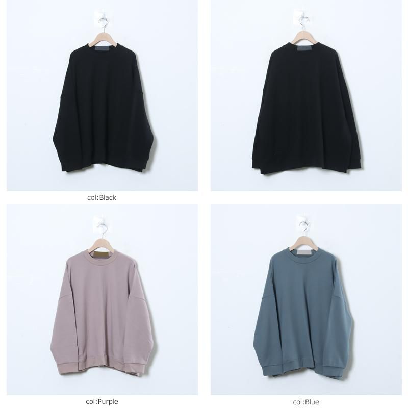 (VOICE) サイズ0を着用、ゆったりとしたシルエットで程よいオーバーサイズ感。厚すぎず薄すぎずでレイヤードもしやすく、長いシーズン活躍します。ネック後ろの配色がさりげないポイントです。
