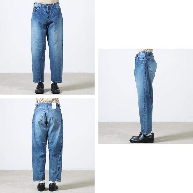 CIOTA(シオタ) New Wide Tapered 5 Pocket Pants - Medium Dark Blue Damage