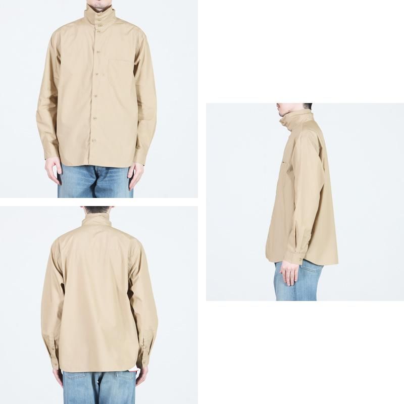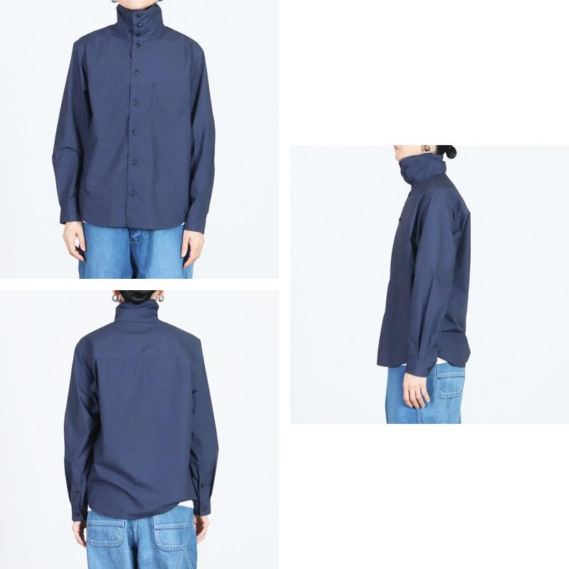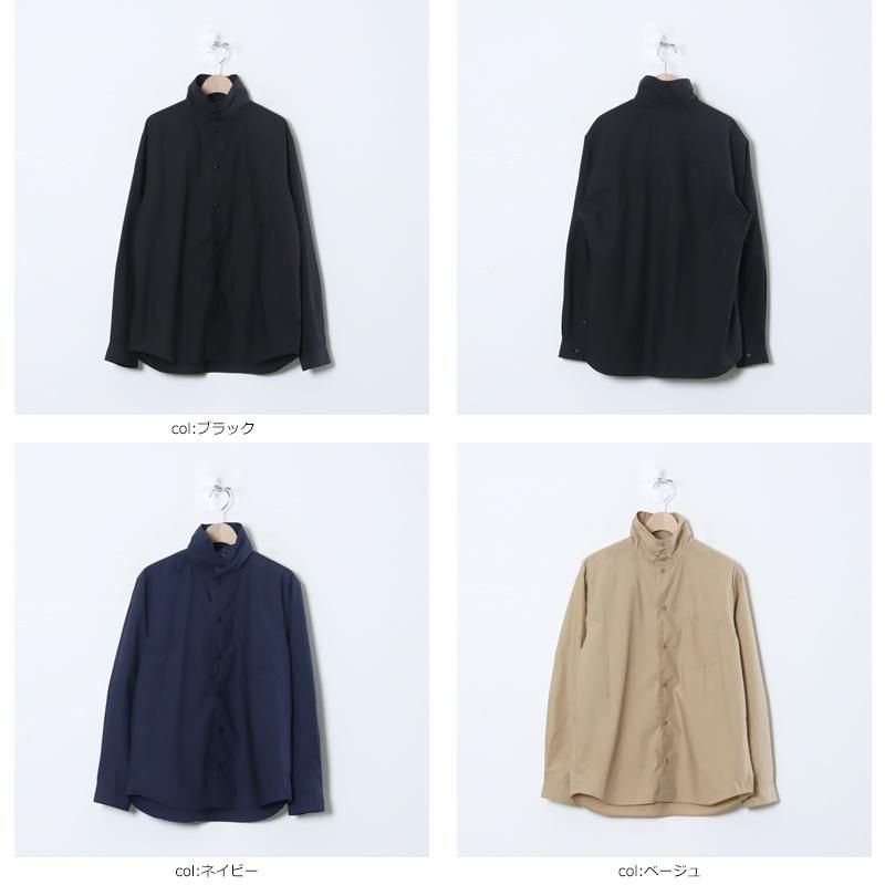 ブランドの定番として長く支持される一枚で、nisicaらしい独自の襟元のデザインが特徴的です。ボタンをすべて留めることでタートルネックのようにも着用でき、開ければレギュラーカラーのシャツとしても楽しめる2WAY仕様。シンプルでありながら、着こなしにさりげない変化を加えてくれます。