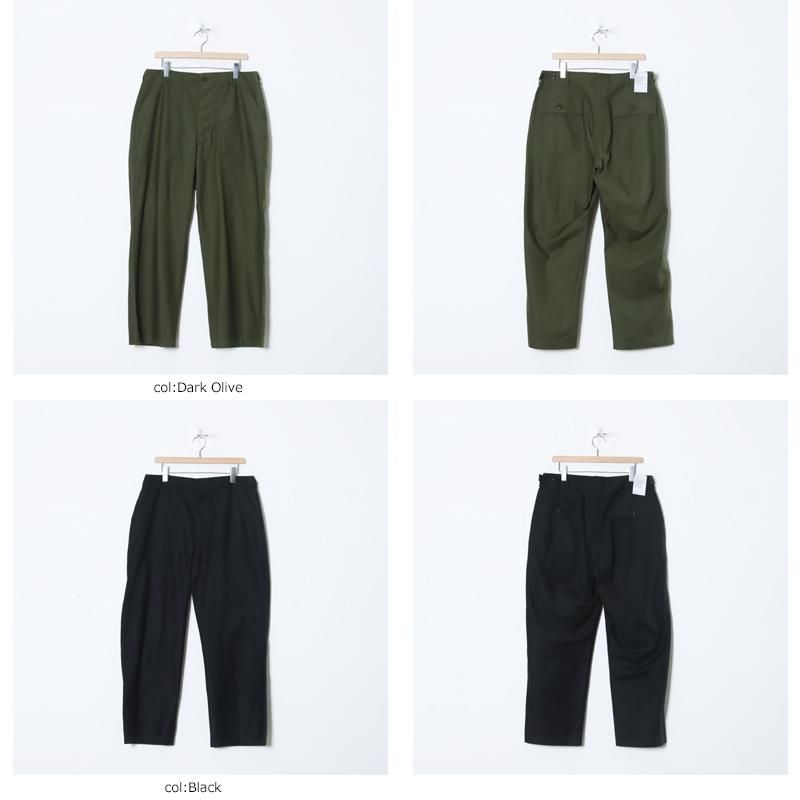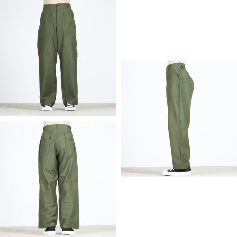 デザインのベースとなっているのは、1950年代にアメリカ軍で採用されていた、ウエストの帯が一枚仕立てになった希少なヴィンテージモデル。サイドアジャスターや尿素ボタン、ダブルステッチのサイドシームなど、当時のディテールを忠実に再現しています。