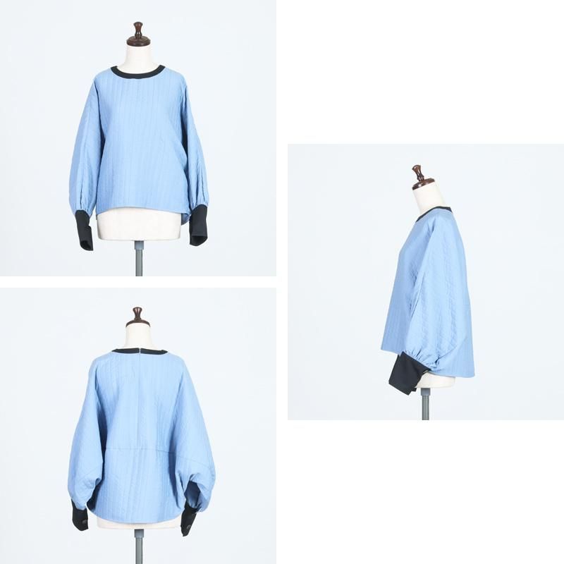 ボリューム感のあるバタフライスリーブが印象的なプルオーバー。キルティングの膨らみ感を織りで表現したストライプ柄が特徴です。
