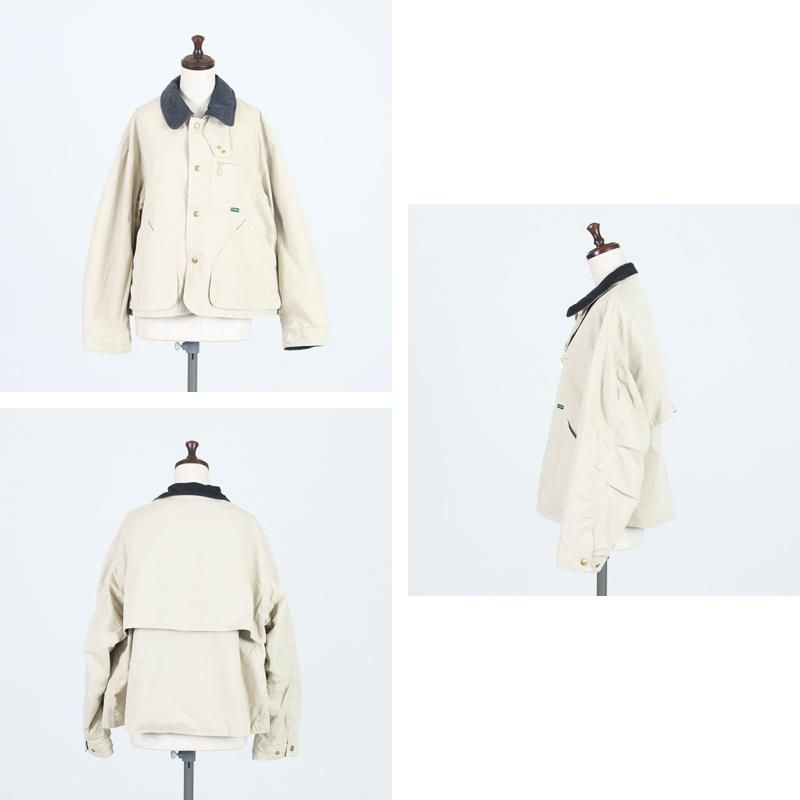 | (VOICE) 身幅はワイドめ、インにスウェットを合わせてゆとりを持って着用できるサイズ感。中綿入りであたたかく、軽い着用感です。洗い加工でやわらかく、なめらかな生地の風合いもポイントです。 |