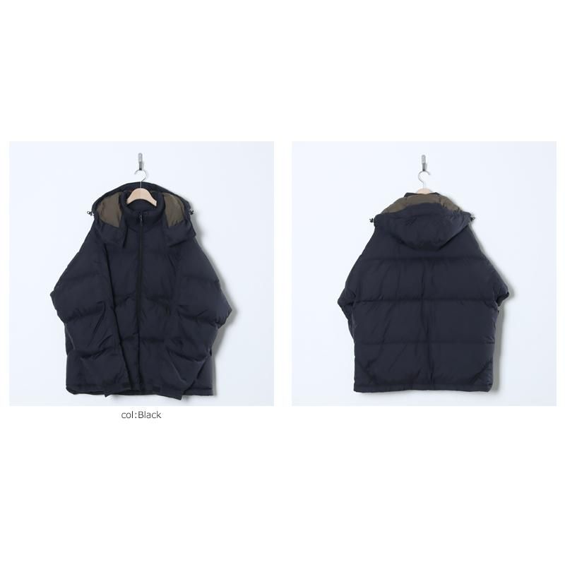 寝袋のような膨らみが特徴のダウンジャケット。素材はナイロン40デニールのクラシックタイプ素材を採用。経糸と緯糸の染着差でリップ表現。