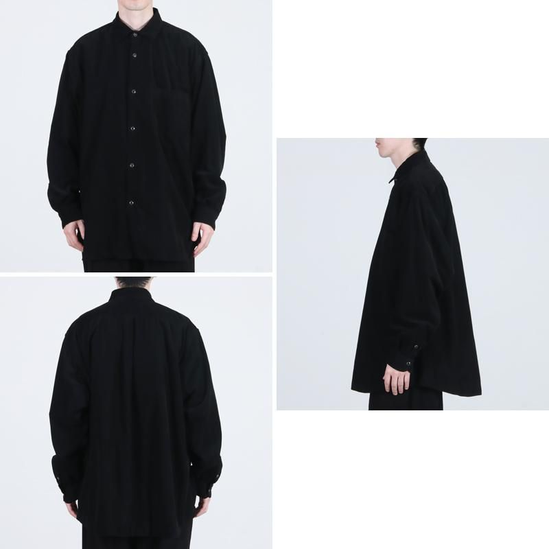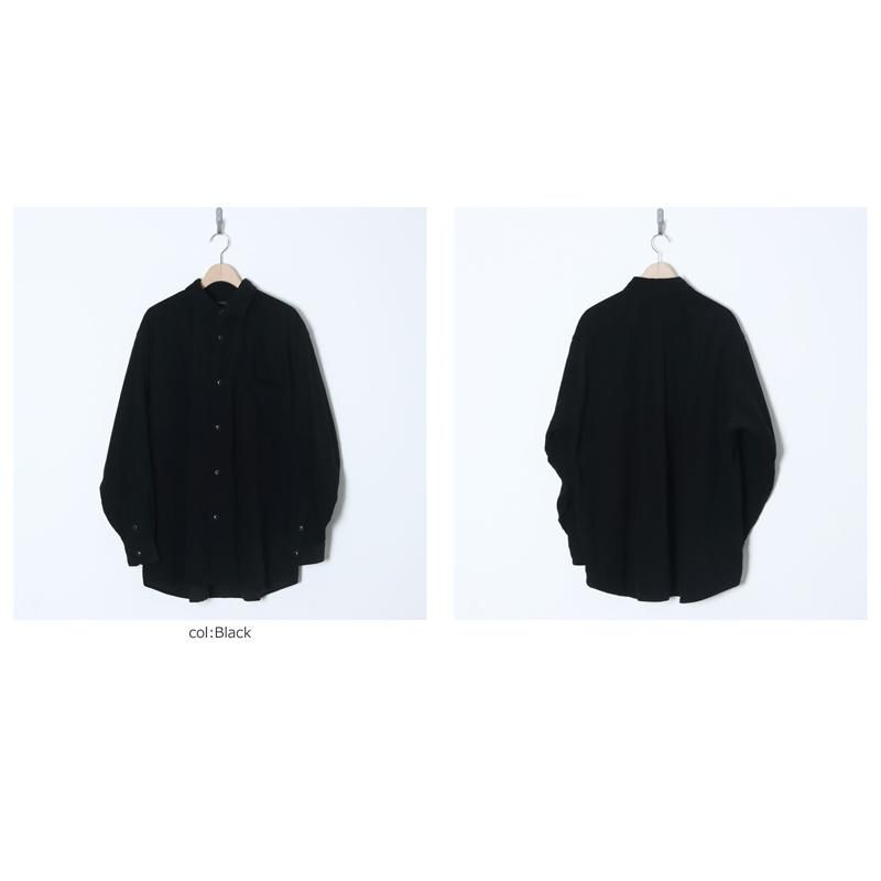 定番のコモリシャツをベースにフロントには、通常のボタンではなくドットボタンを採用することで、シャツでありながら、アウターのような少し重厚感のある雰囲気を加えています。
