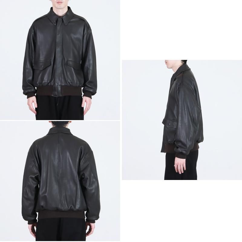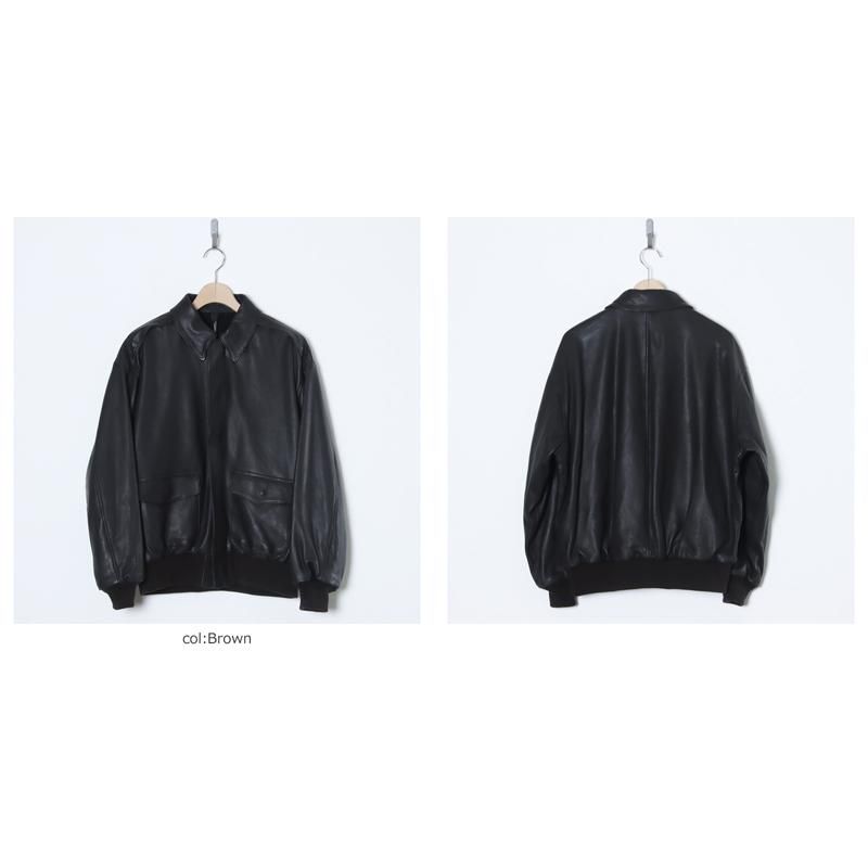 素材には、きめ細かく、しっとりとした滑らかな質感が特徴のシープスキン(羊革)を使用。ミリタリーウェアが持つ硬質なイメージを和らげる、柔らかな風合いが魅力です。裏地には肌触りの良いコットンネルを総裏で採用しています。