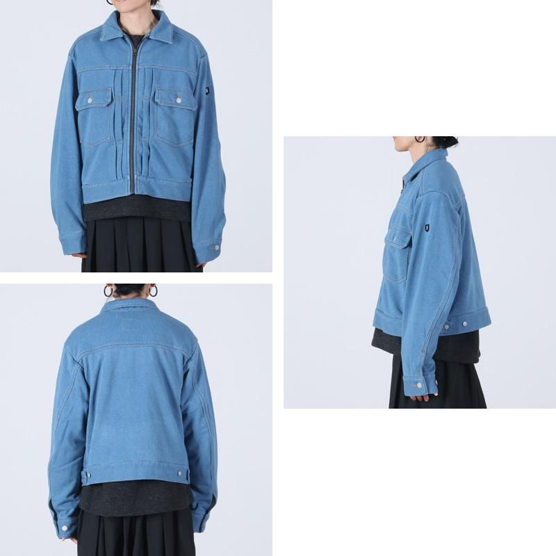 一見デニム生地のような見た目でありながらも、スウェット生地なので柔らかくて肌触りの良い着用感になっています。
