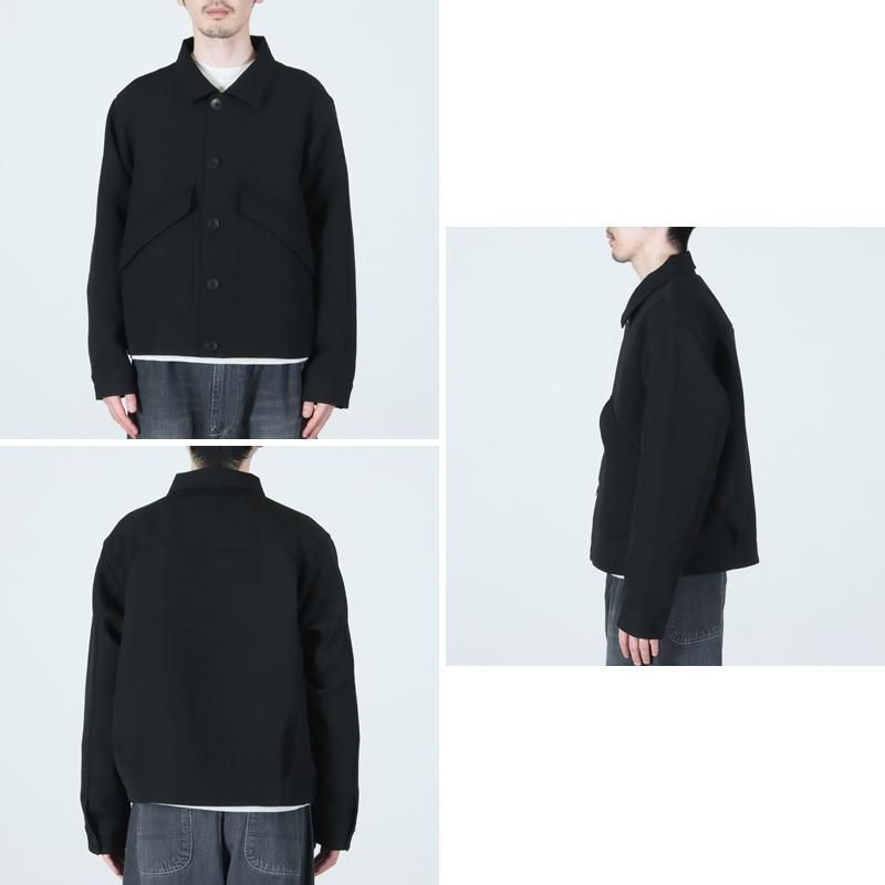 フロントには、薄手で軽量なオリジナルのアルミニウム製ボタンを採用。両脇にはパッチポケットが配され、右ポケットの内側には、さらに小さなセキュリティポケットを備えるなど、機能性も考慮されています。