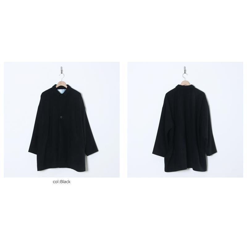 | (VOICE) サイズ0を着用、程よいゆったり感。ハーフ丈で動きやすくとても軽い着用感です。シンプルなデザインながらもさりげなくDulcamaraらしさを感じられるコートです。 | |