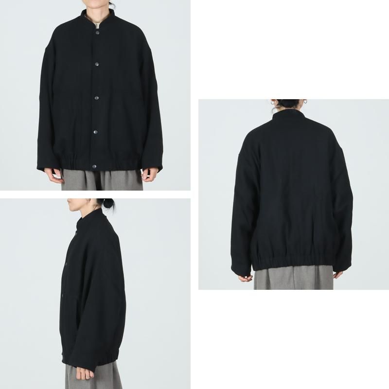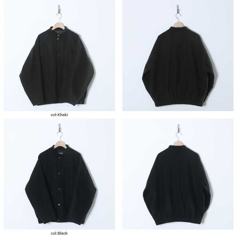 (VOICE) 程よいオーバーサイズシルエットでインにニットなどもゆとりをもって着用できるサイズ感です。スナップボタンでcyくだつもスムーズ、スタンドカラーのシンプルなデザインで着回しやすい一着です。