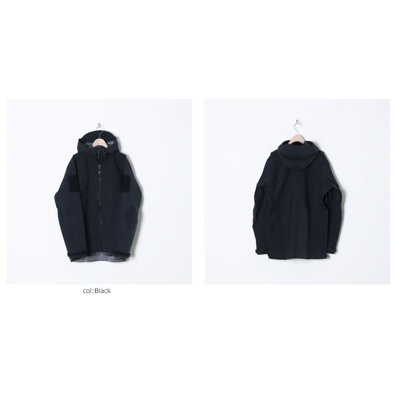 素材にはGORE-TEXを採用。3層からなる防水透湿ファブリックは表生地に耐久性を重視したためジャケットの重量も約750gとTilakラインナップ中、最重量のジャケット。