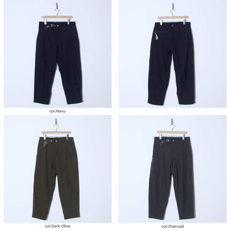 これまで作り続けてきたクライミングパンツでの動きやすさ、履き心地の良さを保ちながら、よりナチュラルな素材を使い、より洗練されたシルエットで、私たちの日常生活をイメージして作られている。