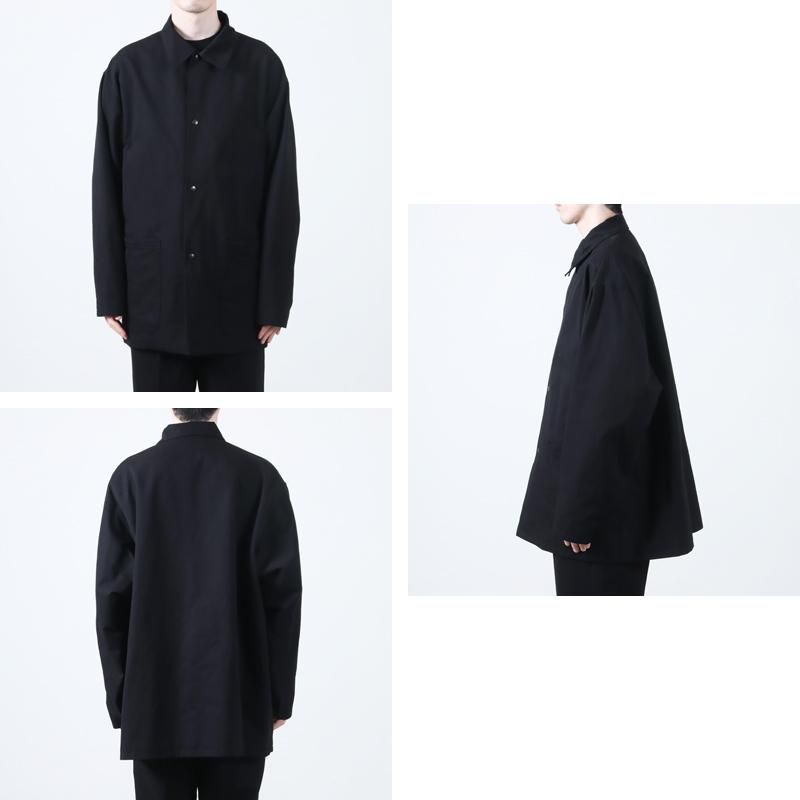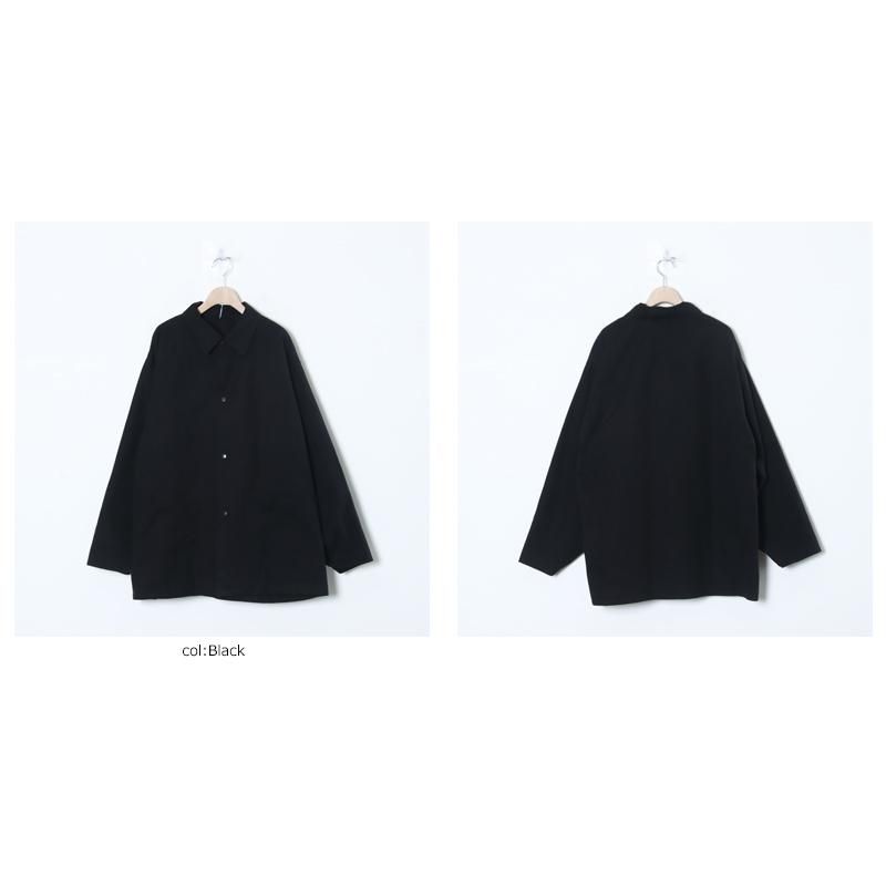 同素材のポストワークツイルパンツと合わせたセットアップスタイルはもちろん、単体でも日々のコーディネートに静かに寄り添う、COMOLIならではのジャケットです。