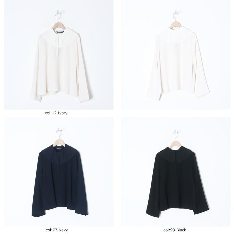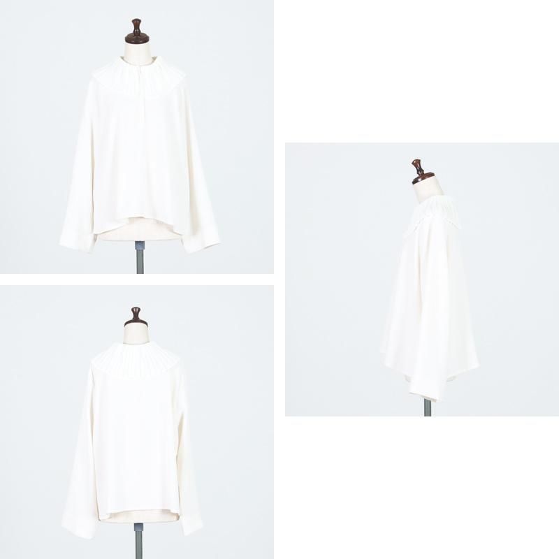 クラシカルなムードを纏う、印象的なビッグプリーツカラーのシャツプルオーバー。