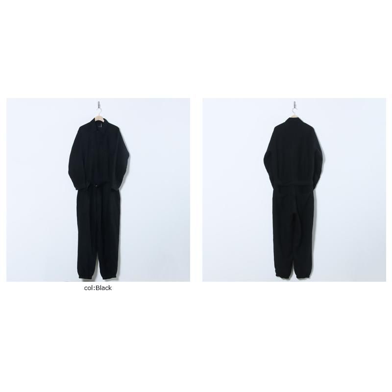 ワーク感のあるアイテムながら、COMOLIらしく、上品で大人の雰囲気で着用していただけるオールインワンです。