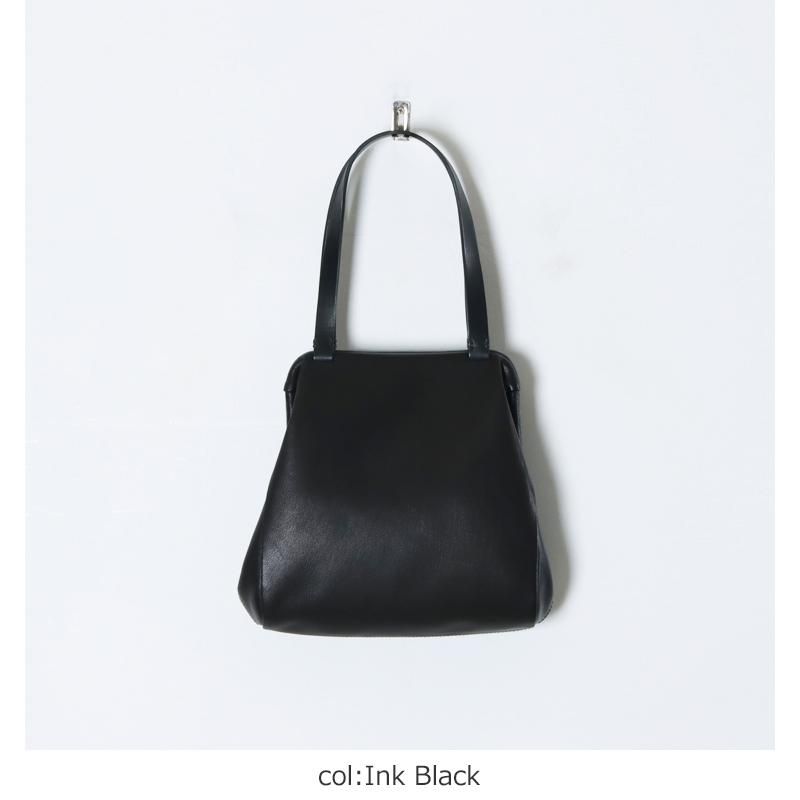 女性の方が手で持ったときにとても良いサイズ感とバランスで、中身が少ない状態であっても、形状は保たれ凛とした存在感、上品さもあり、さまざまなシーンで活躍するバッグです。